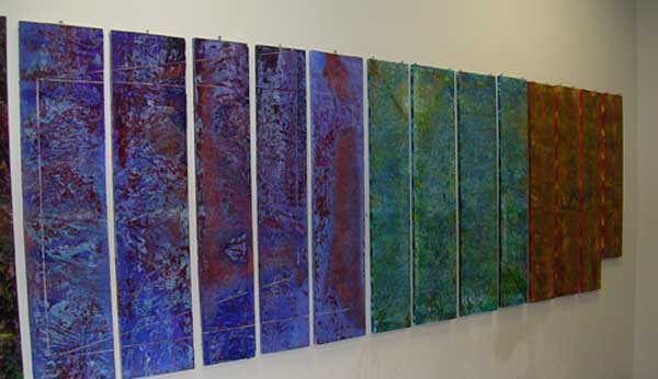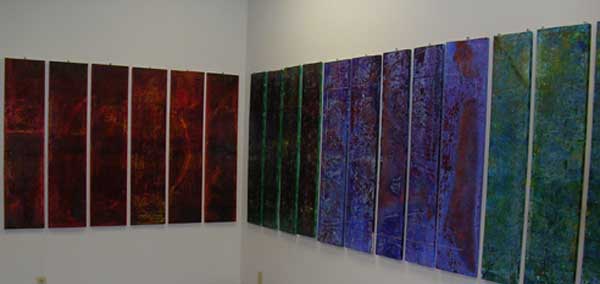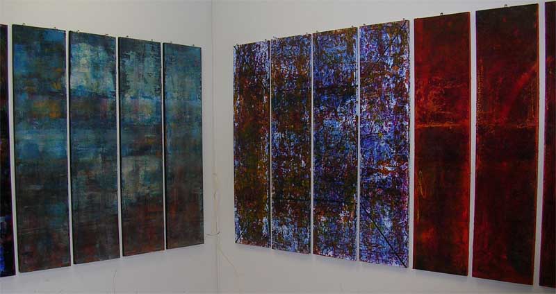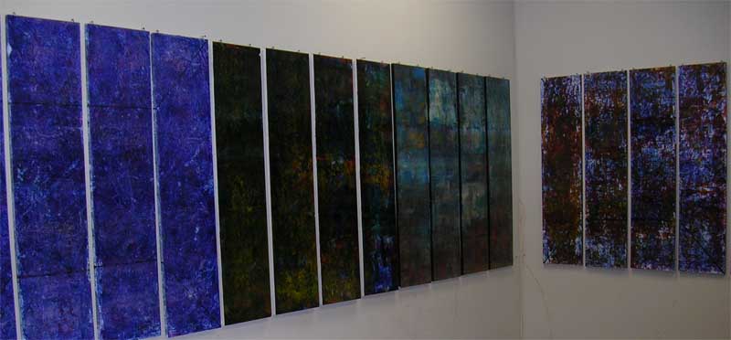 Reality Construct (2005): This installation was developed from a series of paintings and audio work that I had created under the same title. The paintings were each a series of panels, usually four in number, that were arranged with a thin one-inch gap between them. The purpose of the gap was for the viewer to create the additional information that was omitted.