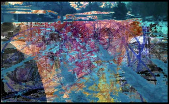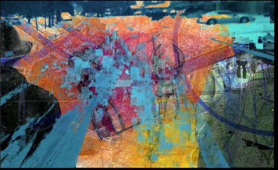 After working with a variety of sources for my Memory Passages video series I began to inspect the still images that were created. The collection of images functions as a reminder or travelogue of my journeys, but also as a set of collage material generated first by chance than by way of my selection. Over the course of 2012 (and beyond) I will be distributing these one of a kind images for free.