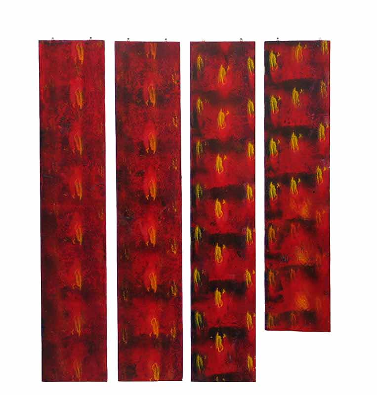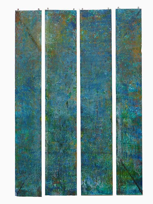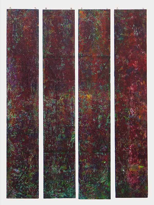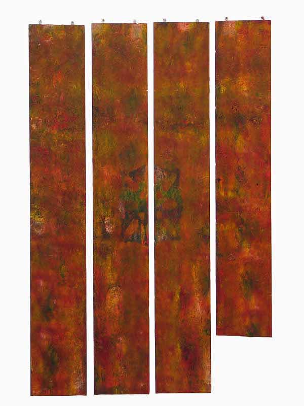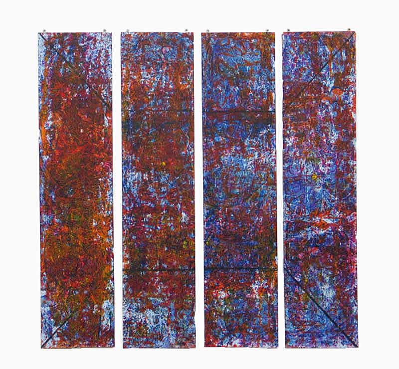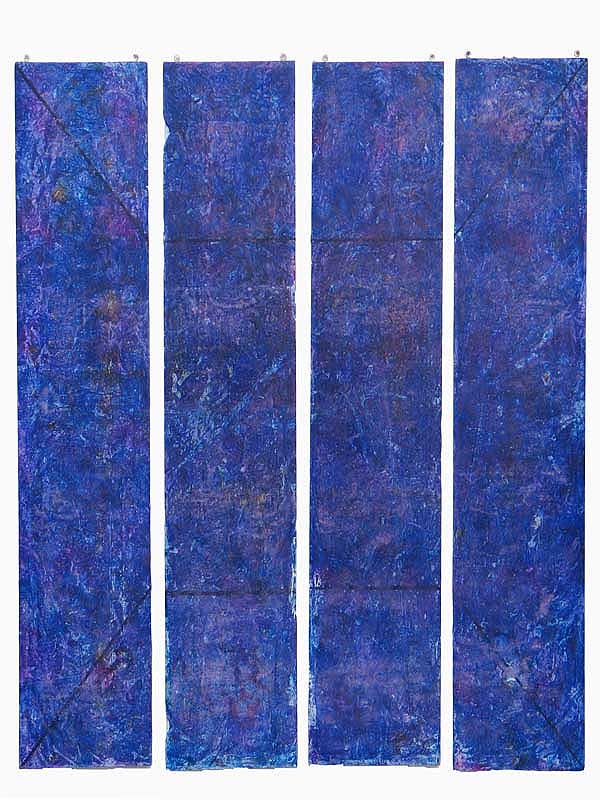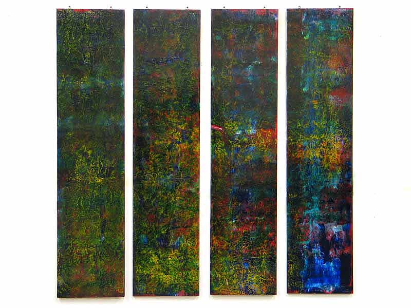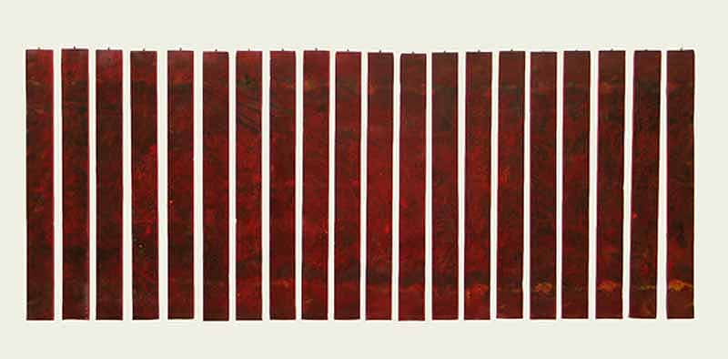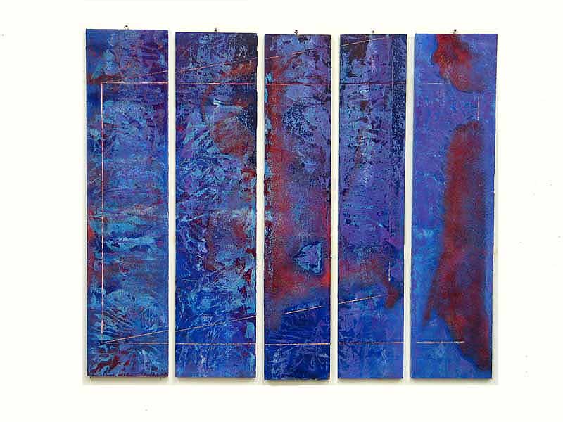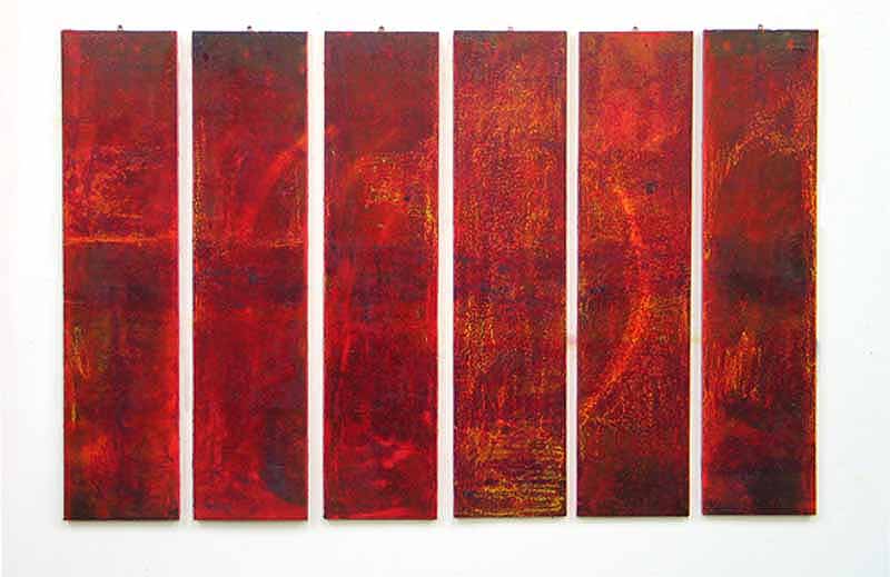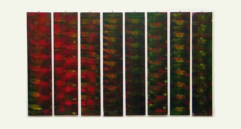 was a series of paintings constructed with a thin gap being present between the panels that compose each work. With each construct the viewer supplies the connection between each part of the painting completing the work.